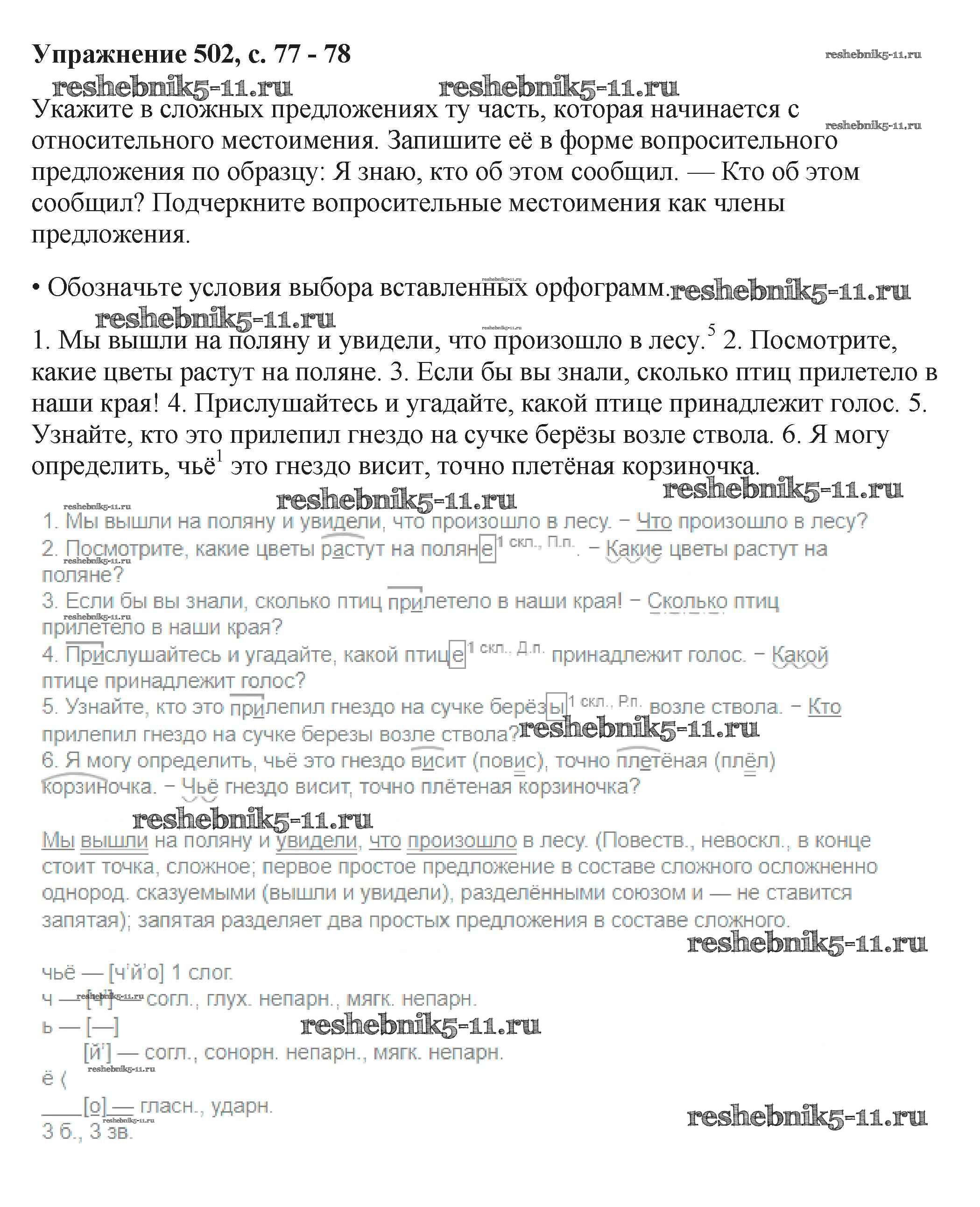 Русский язык за 6 класс Баранов Учебник Просвещение упражнение 502