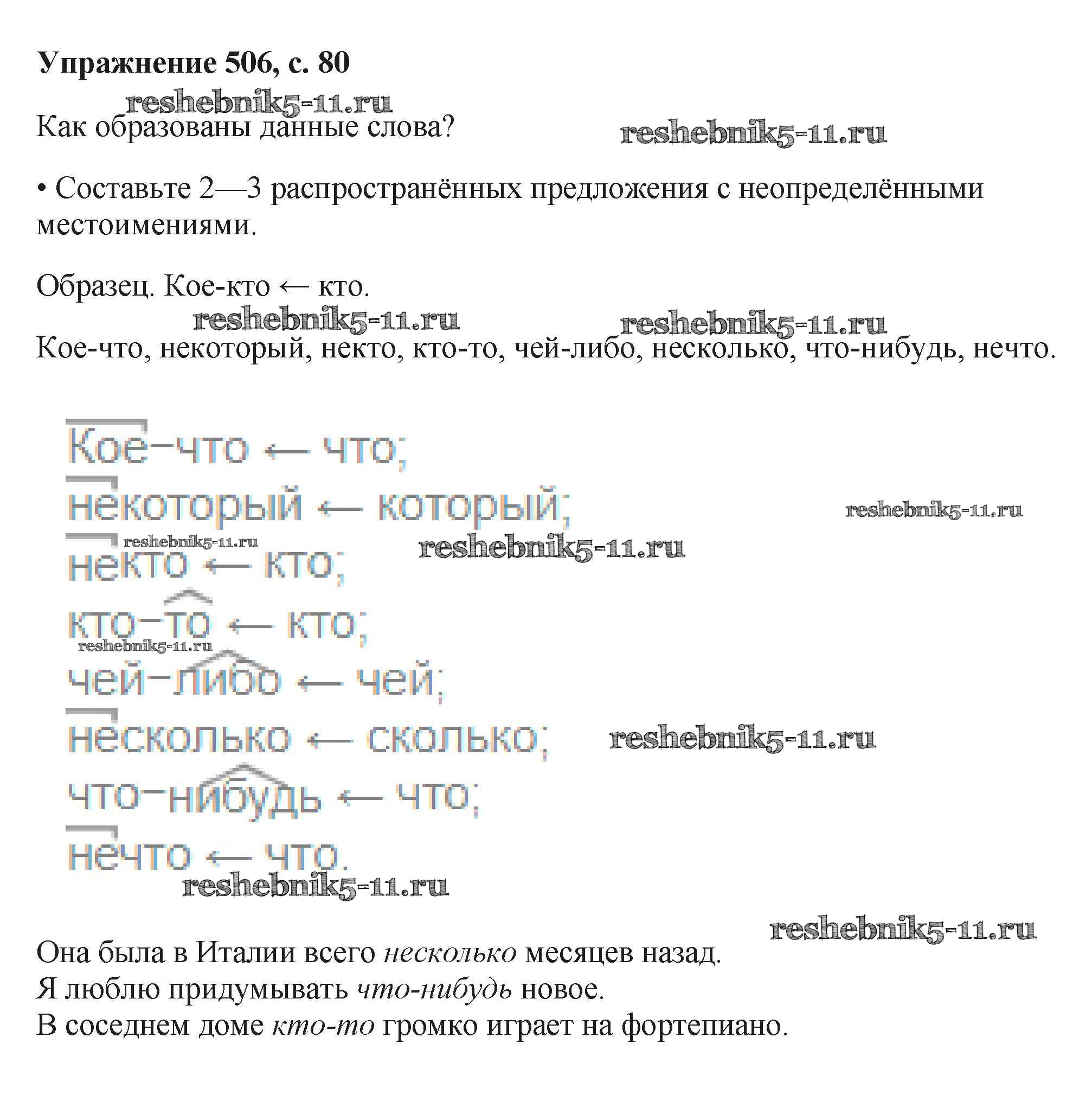 Готовая домашняя работа с ответами по Русскому языку за 6 класс Баранов, Ладыженская, Тростенцова, Григорян, Кулибаба Учебник Часть 1, 2 Просвещение 2015 ФГОС - Упражнения 506