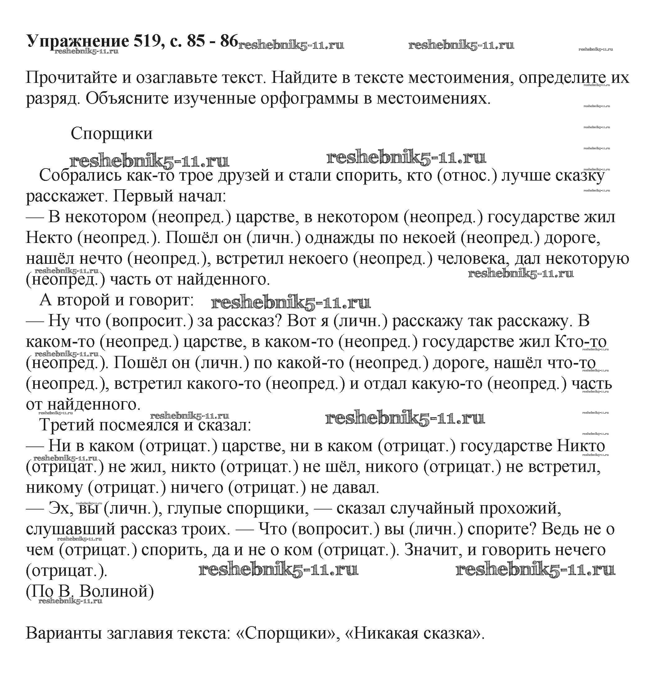 Готовая домашняя работа с ответами по Русскому языку за 6 класс Баранов, Ладыженская, Тростенцова, Григорян, Кулибаба Учебник Часть 1, 2 Просвещение 2015 ФГОС - Упражнения 519