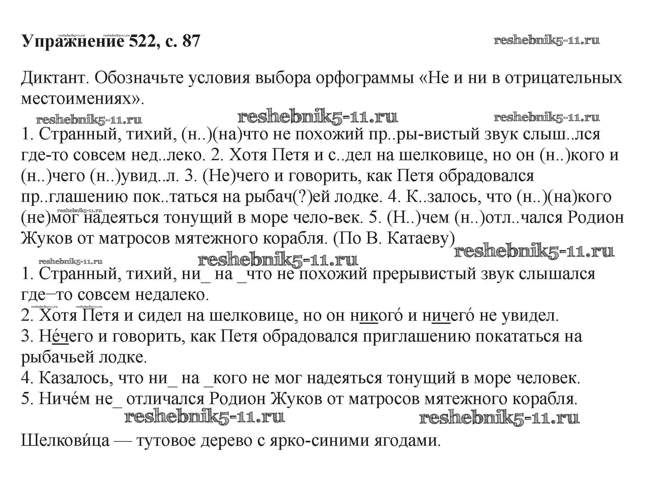 Готовая домашняя работа с ответами по Русскому языку за 6 класс Баранов, Ладыженская, Тростенцова, Григорян, Кулибаба Учебник Часть 1, 2 Просвещение 2015 ФГОС - Упражнения 522