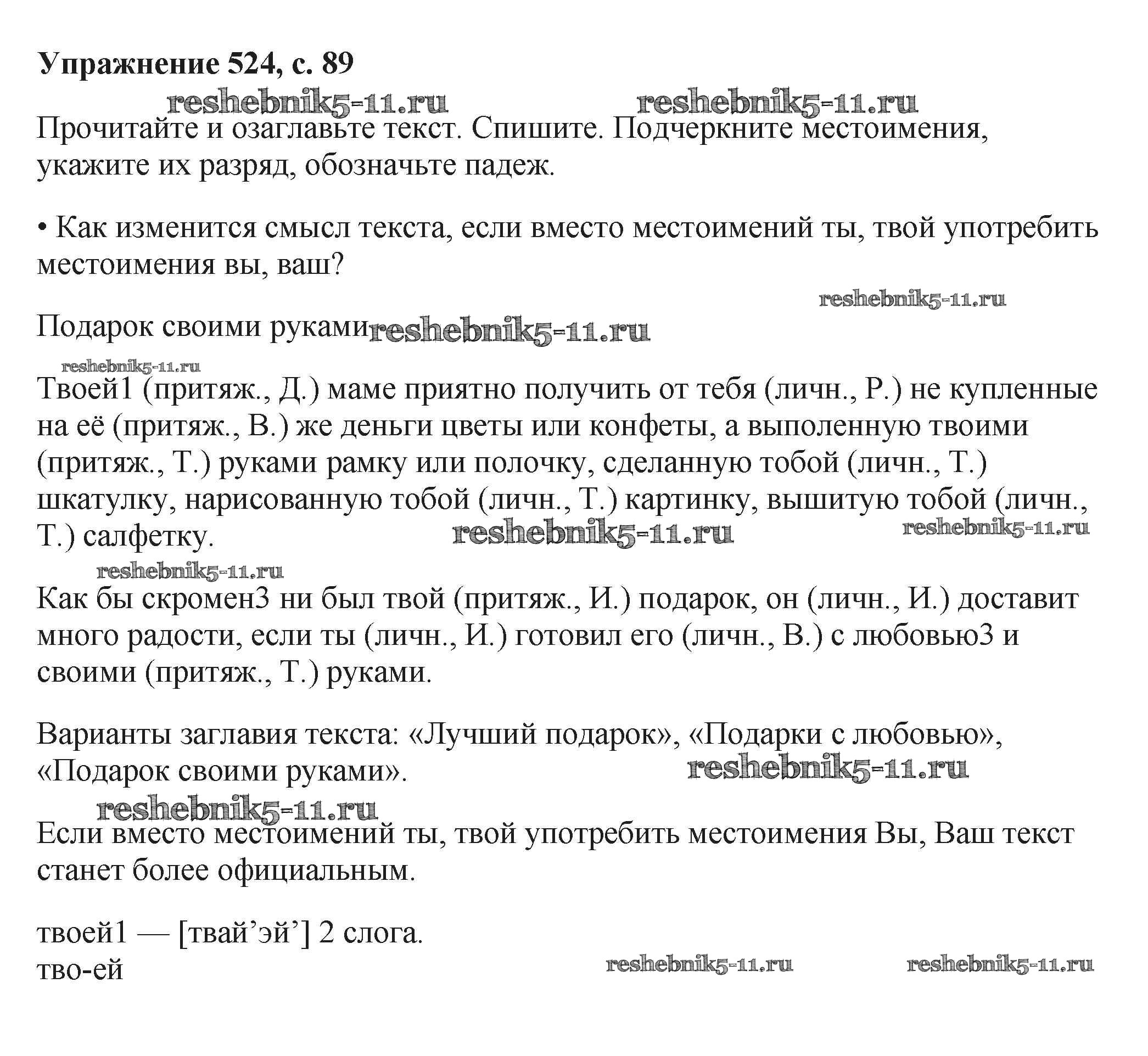 Русский язык за 6 класс Баранов Учебник Просвещение упражнение 524