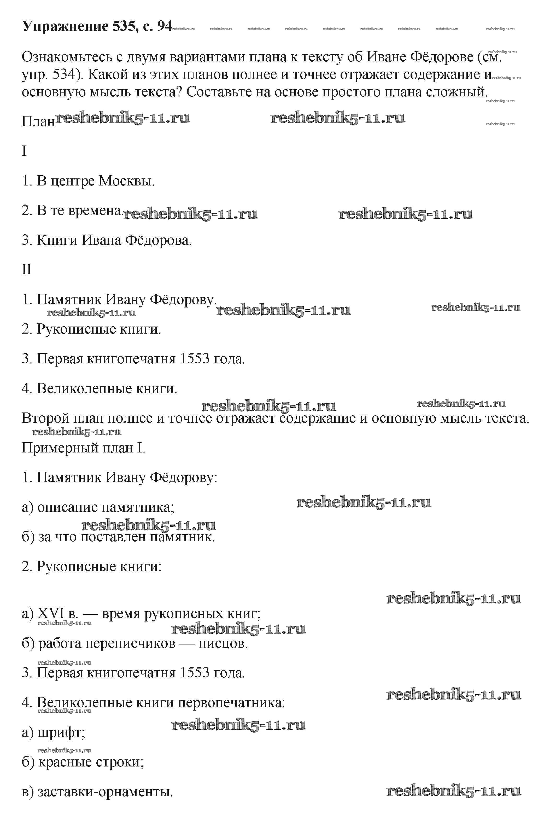 Готовая домашняя работа с ответами по Русскому языку за 6 класс Баранов, Ладыженская, Тростенцова, Григорян, Кулибаба Учебник Часть 1, 2 Просвещение 2015 ФГОС - Упражнения 535