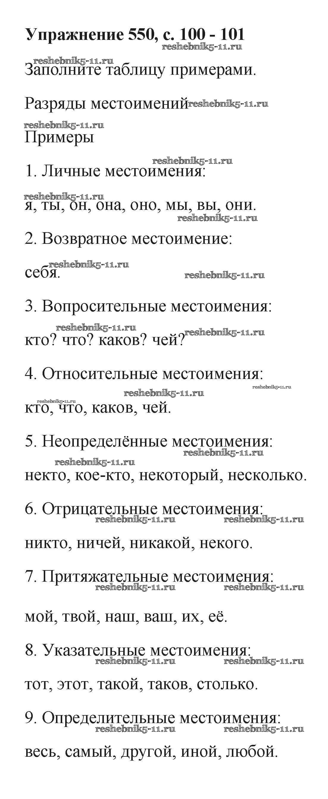 Русский язык за 6 класс Баранов Учебник Просвещение упражнение 550