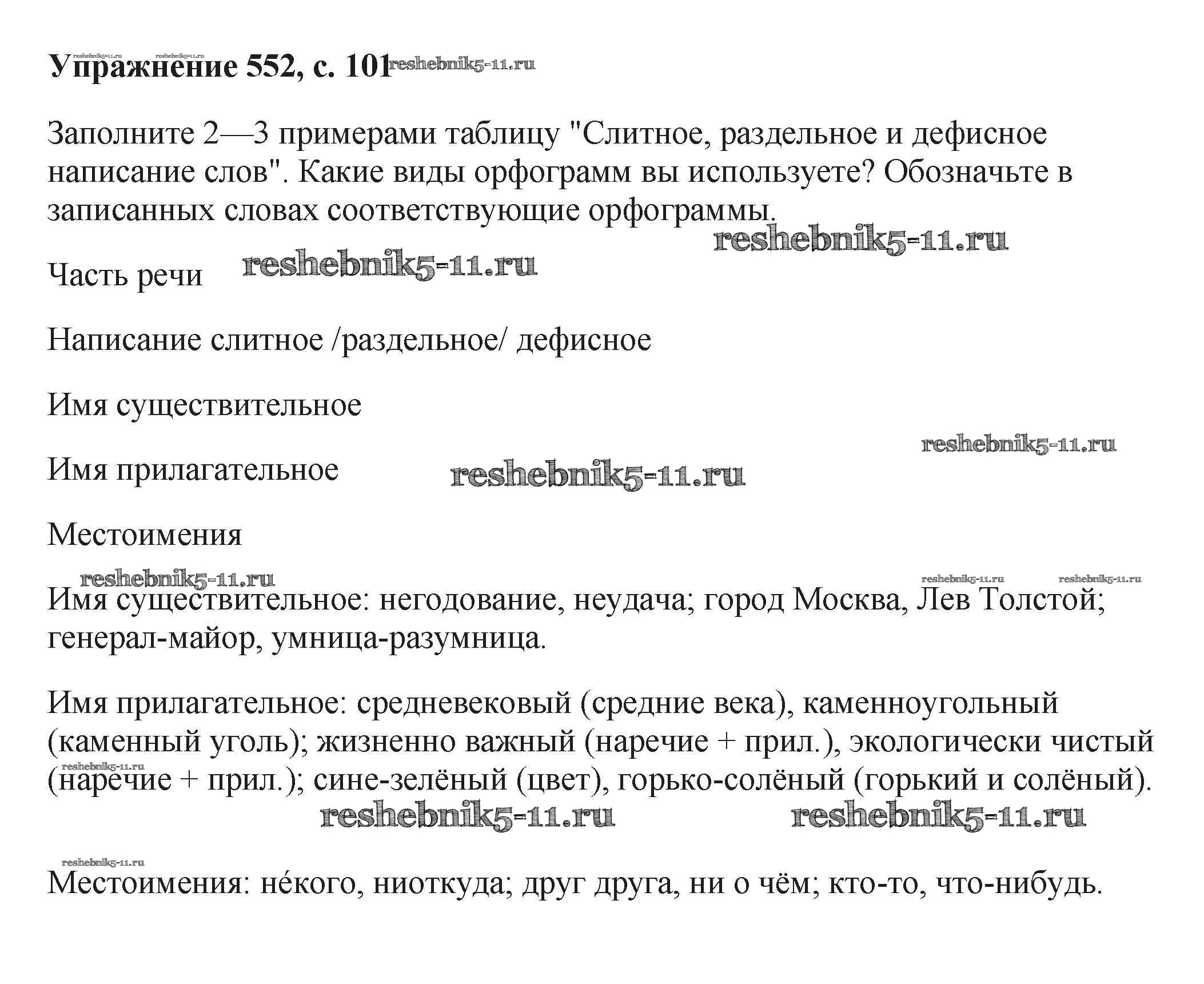 Готовая домашняя работа с ответами по Русскому языку за 6 класс Баранов, Ладыженская, Тростенцова, Григорян, Кулибаба Учебник Часть 1, 2 Просвещение 2015 ФГОС - Упражнения 552