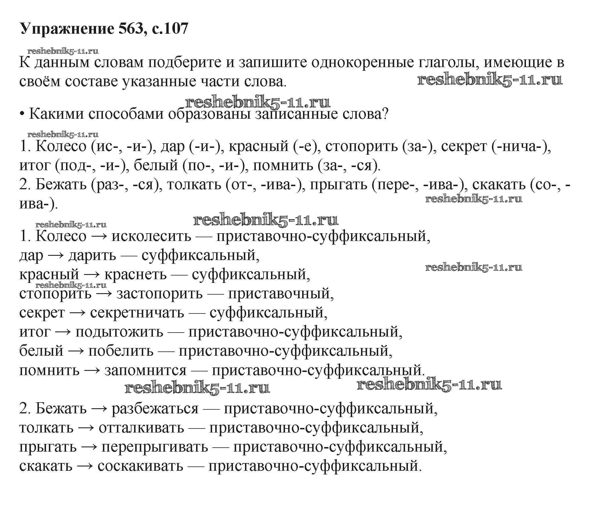 Готовая домашняя работа с ответами по Русскому языку за 6 класс Баранов, Ладыженская, Тростенцова, Григорян, Кулибаба Учебник Часть 1, 2 Просвещение 2015 ФГОС - Упражнения 563