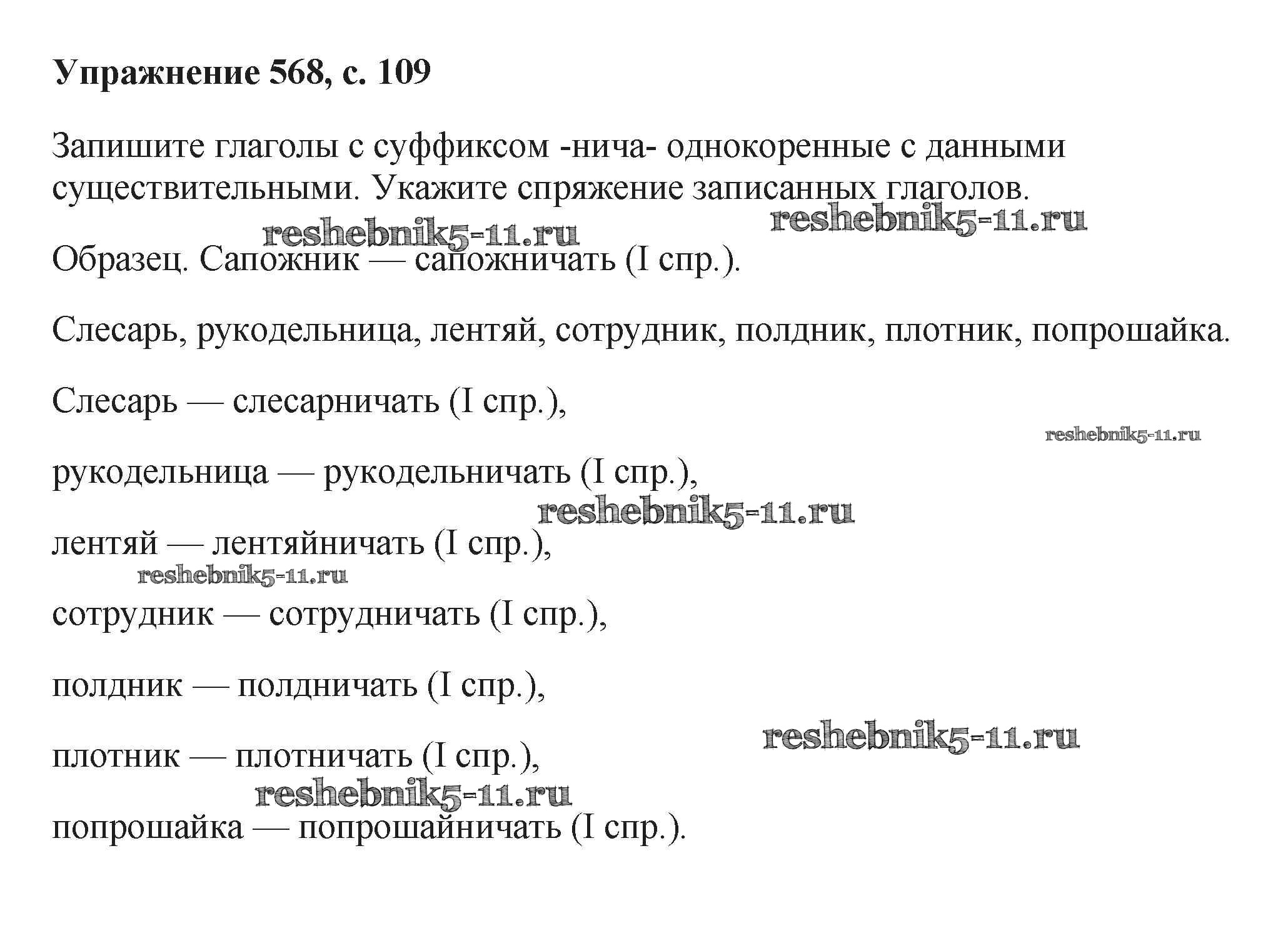 Готовая домашняя работа с ответами по Русскому языку за 6 класс Баранов, Ладыженская, Тростенцова, Григорян, Кулибаба Учебник Часть 1, 2 Просвещение 2015 ФГОС - Упражнения 568