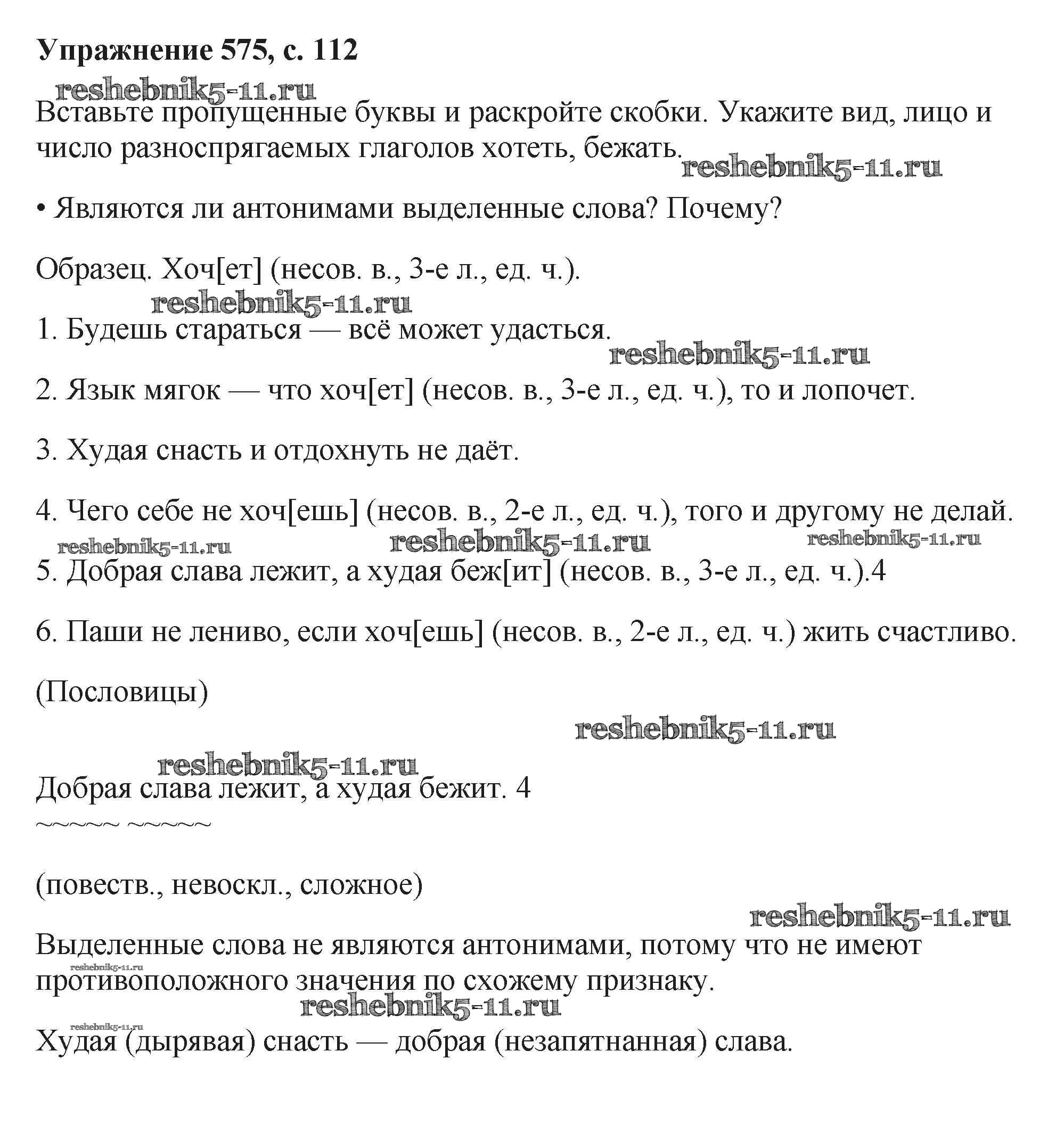 Готовая домашняя работа с ответами по Русскому языку за 6 класс Баранов, Ладыженская, Тростенцова, Григорян, Кулибаба Учебник Часть 1, 2 Просвещение 2015 ФГОС - Упражнения 575
