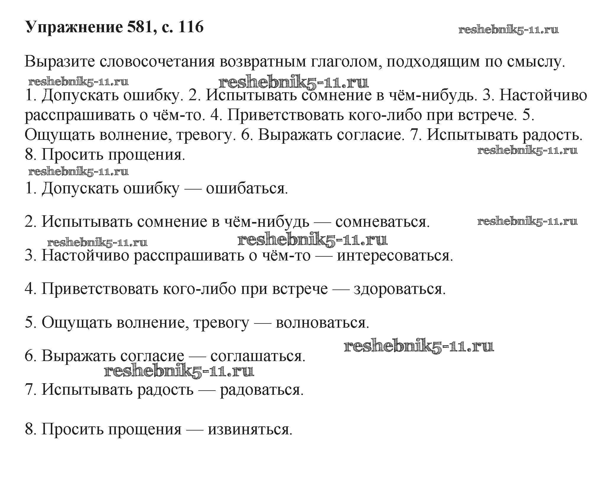 Русский язык за 6 класс Баранов Учебник Просвещение упражнение 581