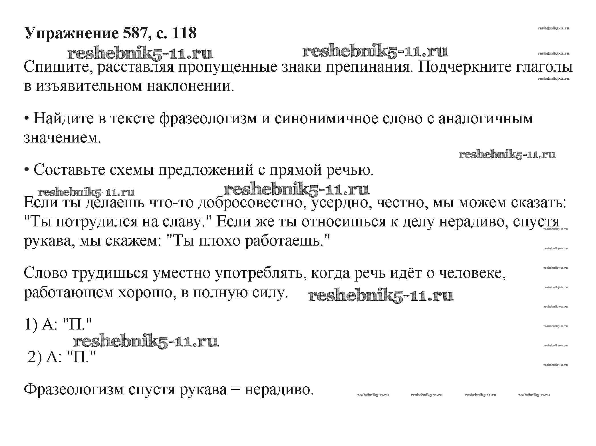 Готовая домашняя работа с ответами по Русскому языку за 6 класс Баранов, Ладыженская, Тростенцова, Григорян, Кулибаба Учебник Часть 1, 2 Просвещение 2015 ФГОС - Упражнения 587