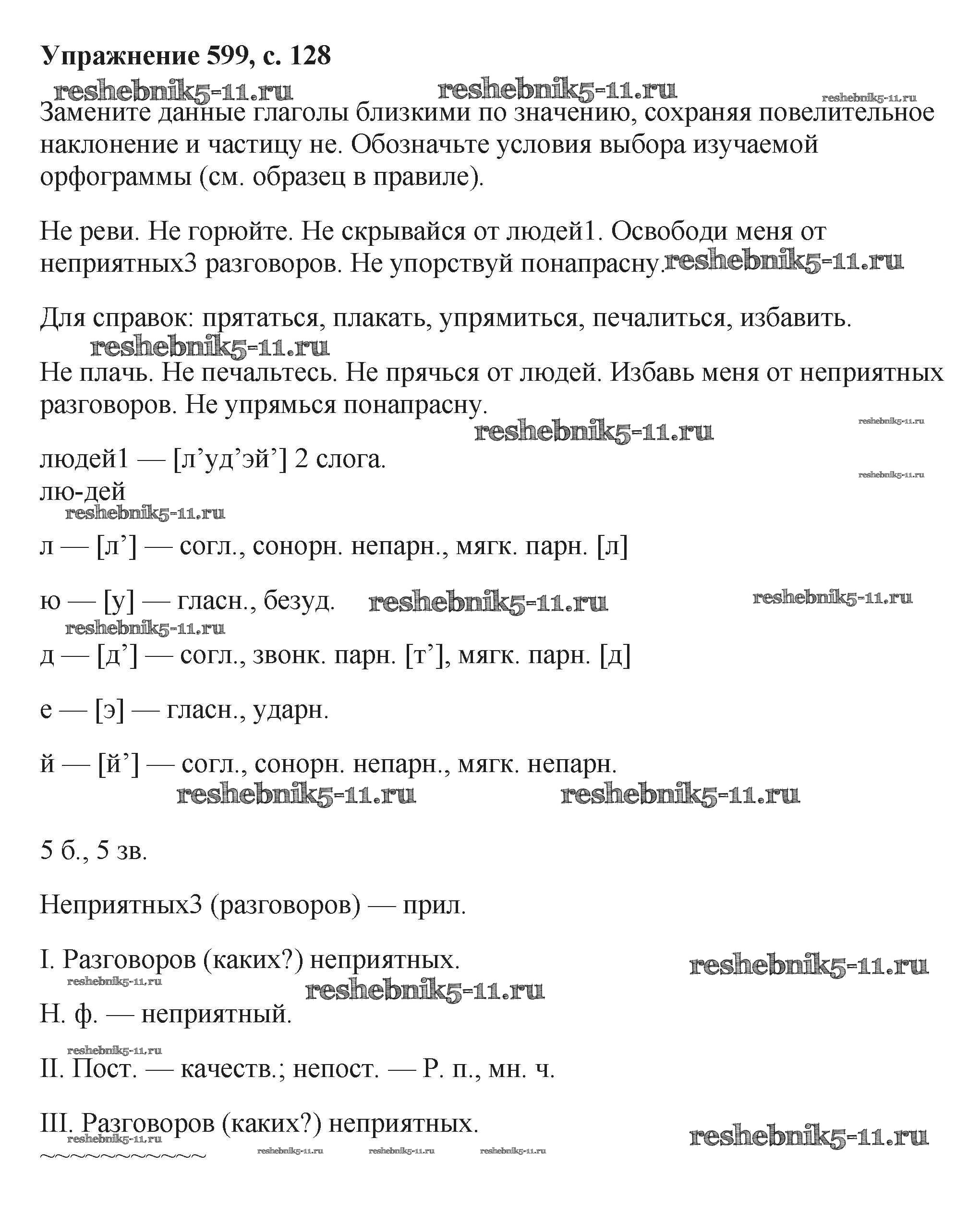 Готовая домашняя работа с ответами по Русскому языку за 6 класс Баранов, Ладыженская, Тростенцова, Григорян, Кулибаба Учебник Часть 1, 2 Просвещение 2015 ФГОС - Упражнения 599