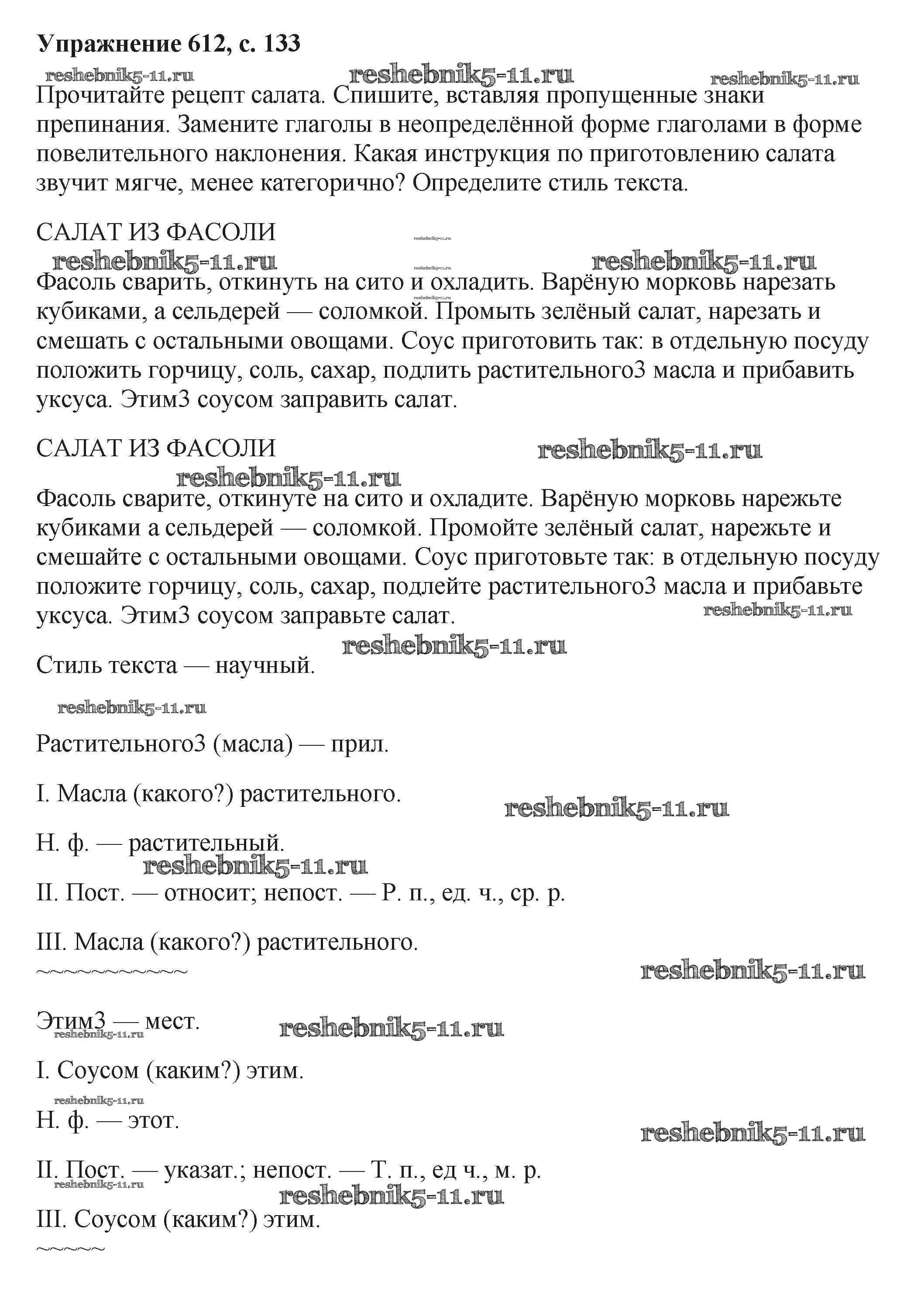 Готовая домашняя работа с ответами по Русскому языку за 6 класс Баранов, Ладыженская, Тростенцова, Григорян, Кулибаба Учебник Часть 1, 2 Просвещение 2015 ФГОС - Упражнения 612