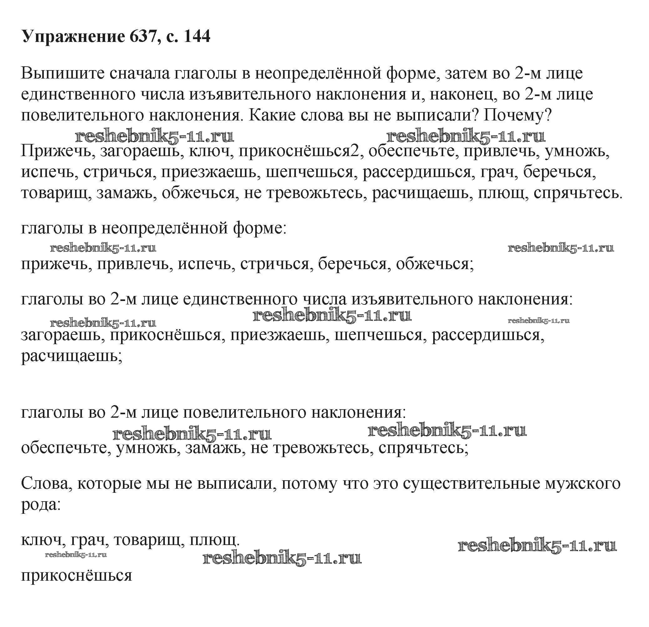Готовая домашняя работа с ответами по Русскому языку за 6 класс Баранов, Ладыженская, Тростенцова, Григорян, Кулибаба Учебник Часть 1, 2 Просвещение 2015 ФГОС - Упражнения 637