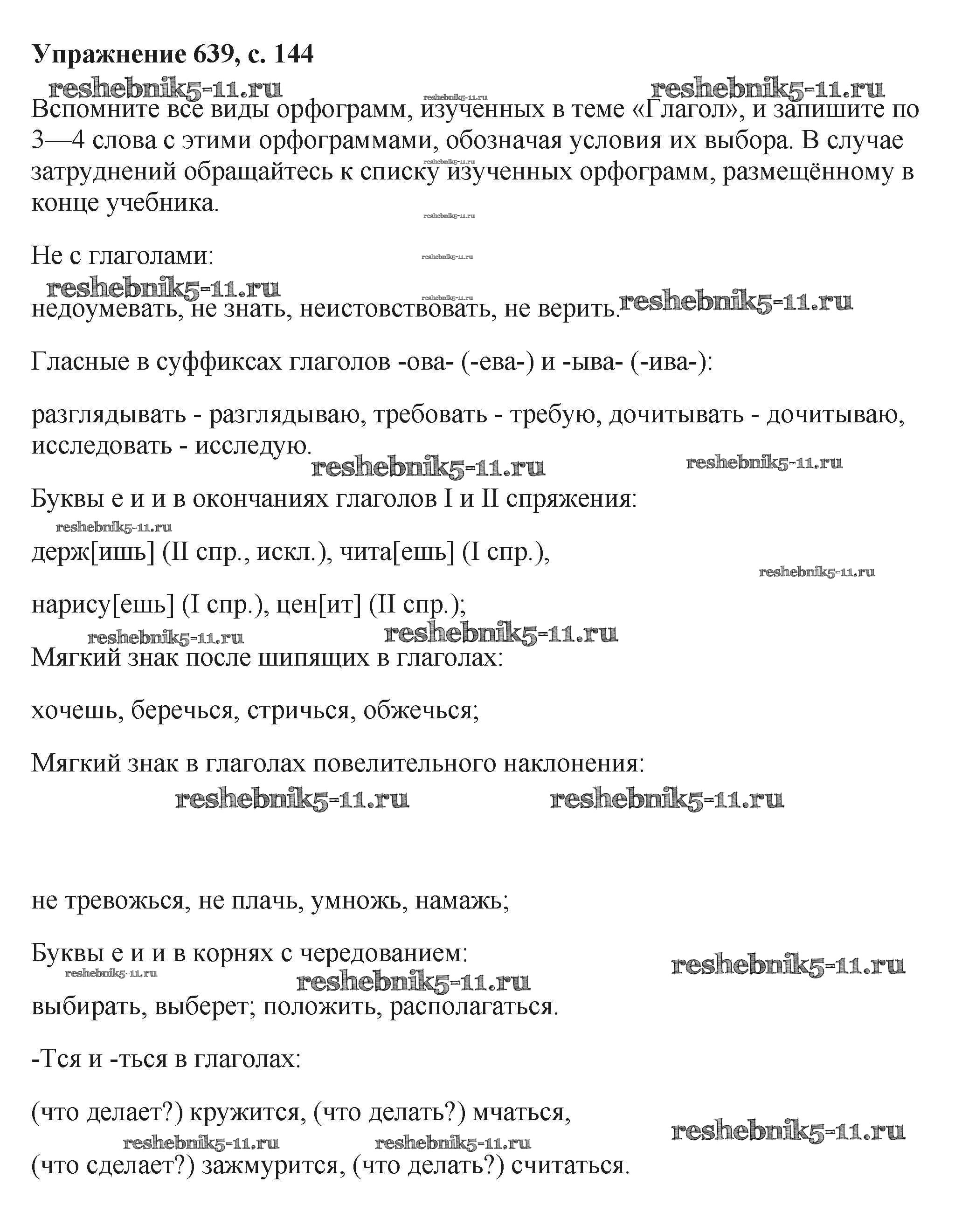 Готовая домашняя работа с ответами по Русскому языку за 6 класс Баранов, Ладыженская, Тростенцова, Григорян, Кулибаба Учебник Часть 1, 2 Просвещение 2015 ФГОС - Упражнения 639