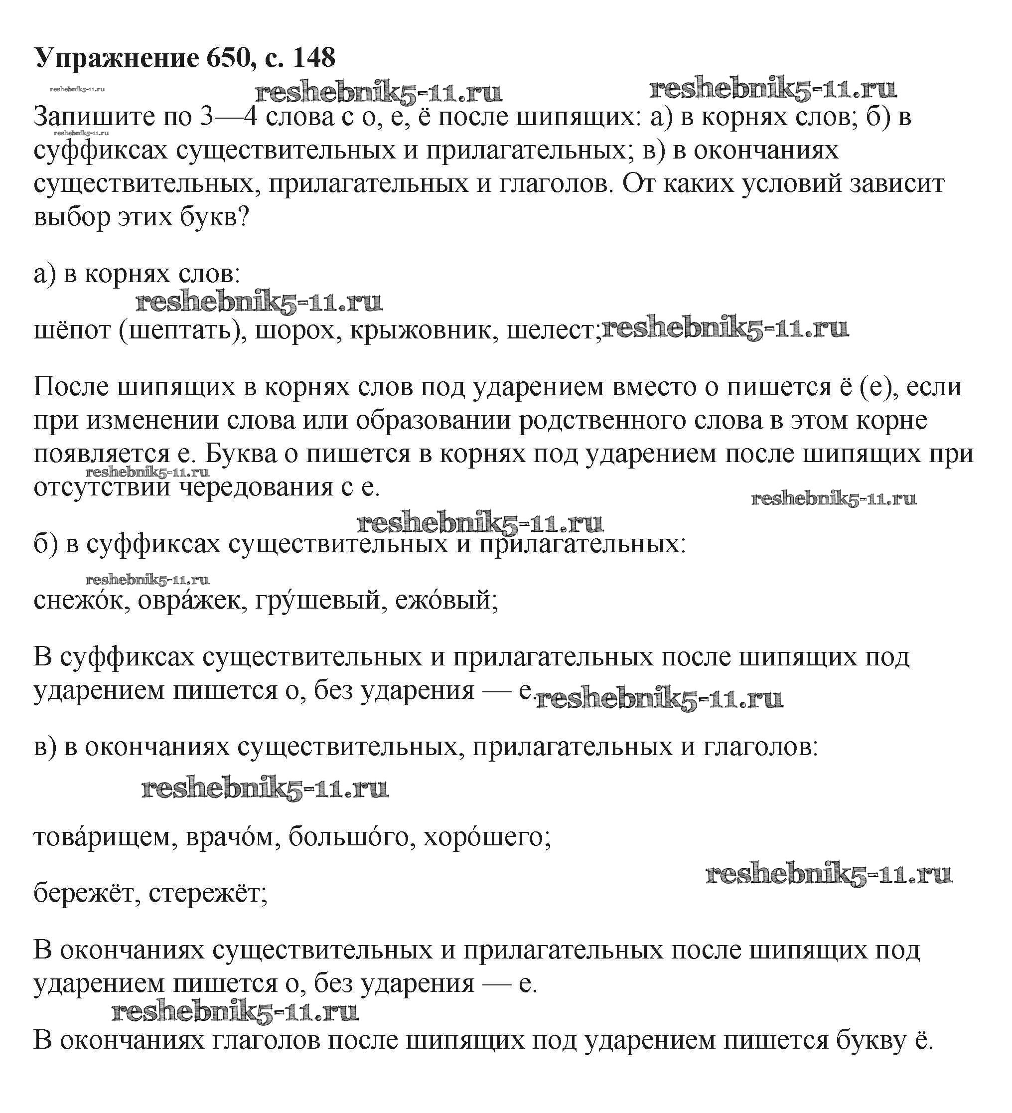 Готовая домашняя работа с ответами по Русскому языку за 6 класс Баранов, Ладыженская, Тростенцова, Григорян, Кулибаба Учебник Часть 1, 2 Просвещение 2015 ФГОС - Упражнения 650