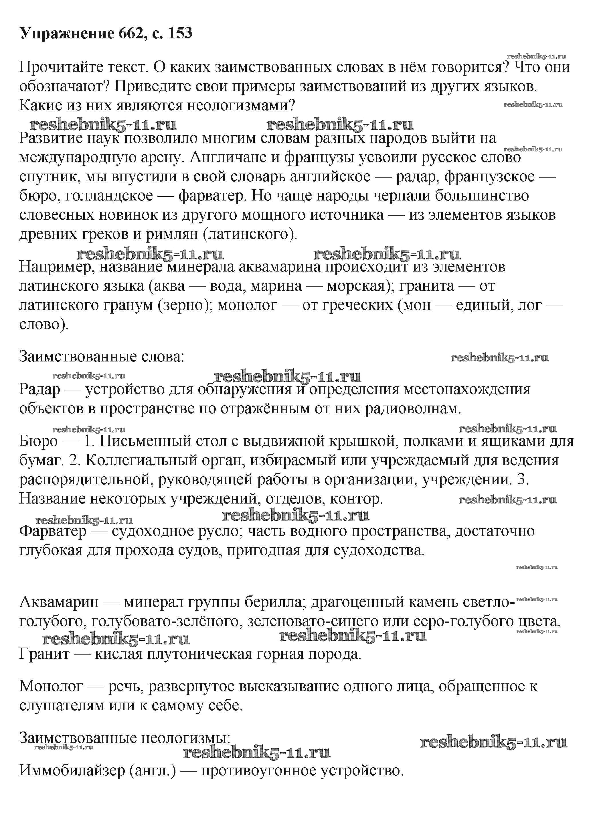 Русский язык за 6 класс Баранов Учебник Просвещение упражнение 662