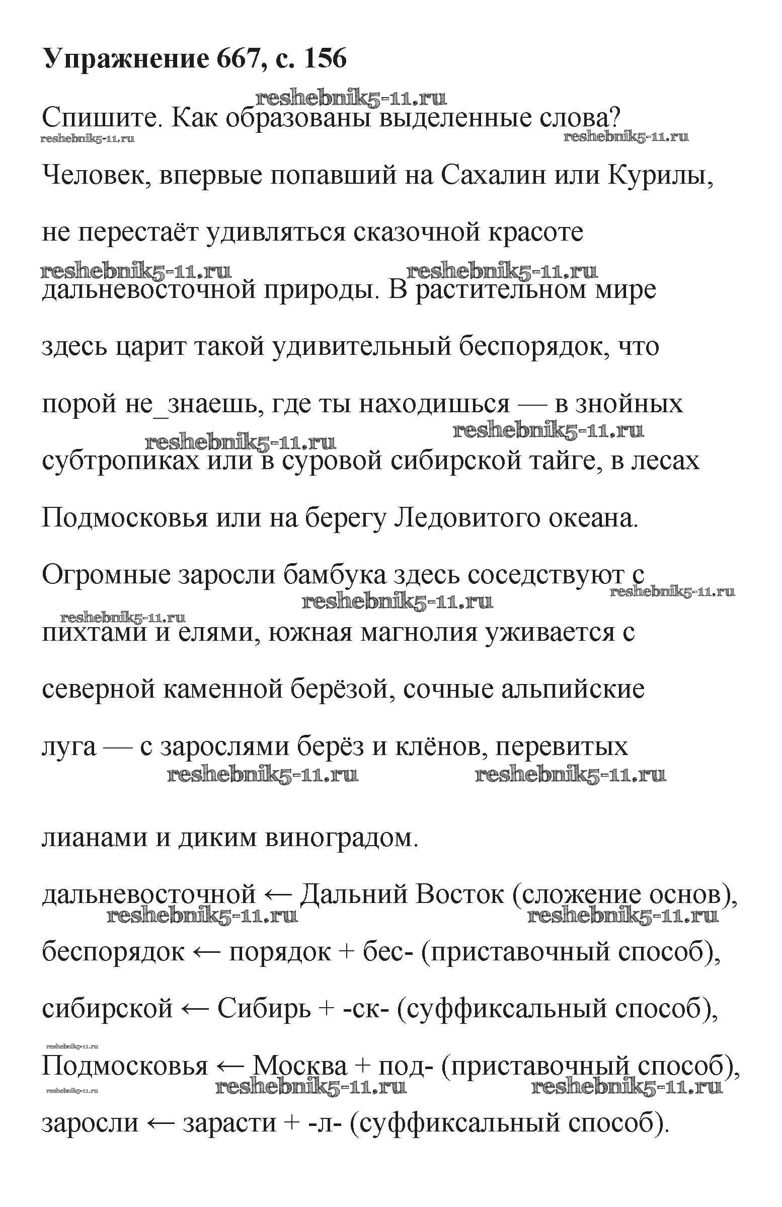 Готовая домашняя работа с ответами по Русскому языку за 6 класс Баранов, Ладыженская, Тростенцова, Григорян, Кулибаба Учебник Часть 1, 2 Просвещение 2015 ФГОС - Упражнения 667