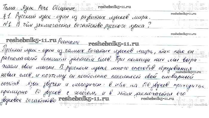 Готовая домашняя работа с ответами по Русскому языку за 6 класс Баранов, Ладыженская, Тростенцова, Григорян, Кулибаба Учебник Часть 1, 2 Просвещение 2015 ФГОС - Упражнения 1