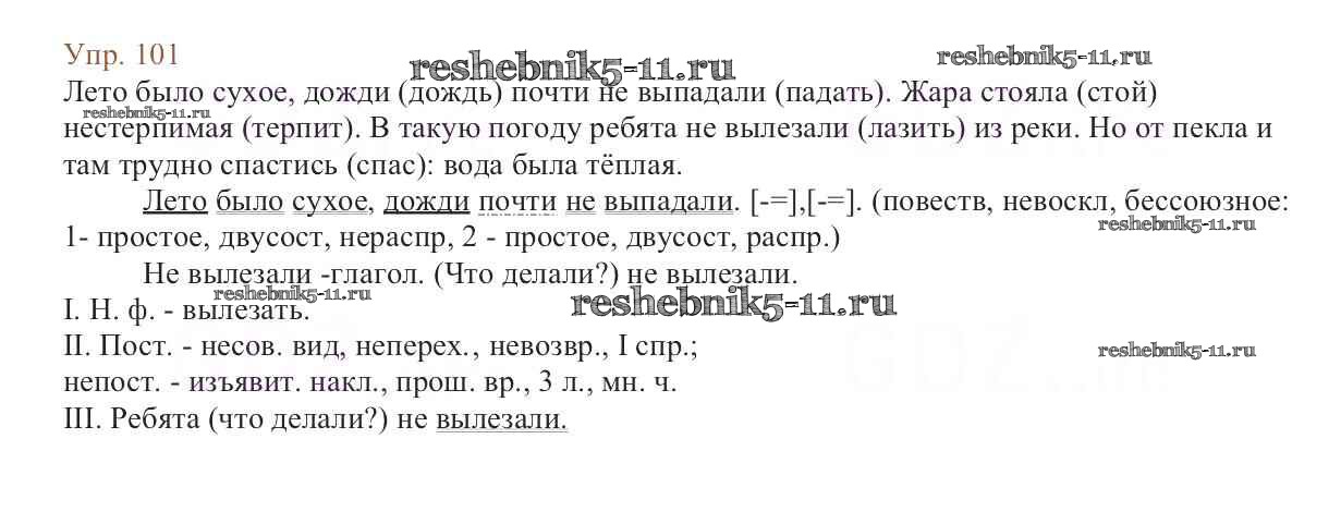 Готовая домашняя работа с ответами по Русскому языку за 6 класс Баранов, Ладыженская, Тростенцова, Григорян, Кулибаба Учебник Часть 1, 2 Просвещение 2015 ФГОС - Упражнения 101