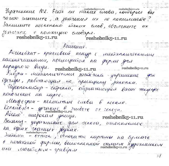 Готовая домашняя работа с ответами по Русскому языку за 6 класс Баранов, Ладыженская, Тростенцова, Григорян, Кулибаба Учебник Часть 1, 2 Просвещение 2015 ФГОС - Упражнения 102