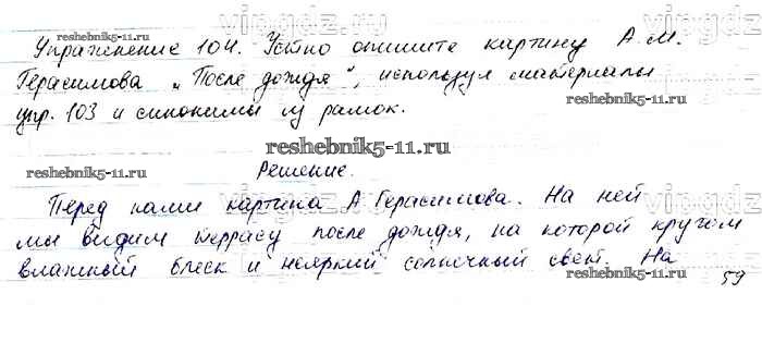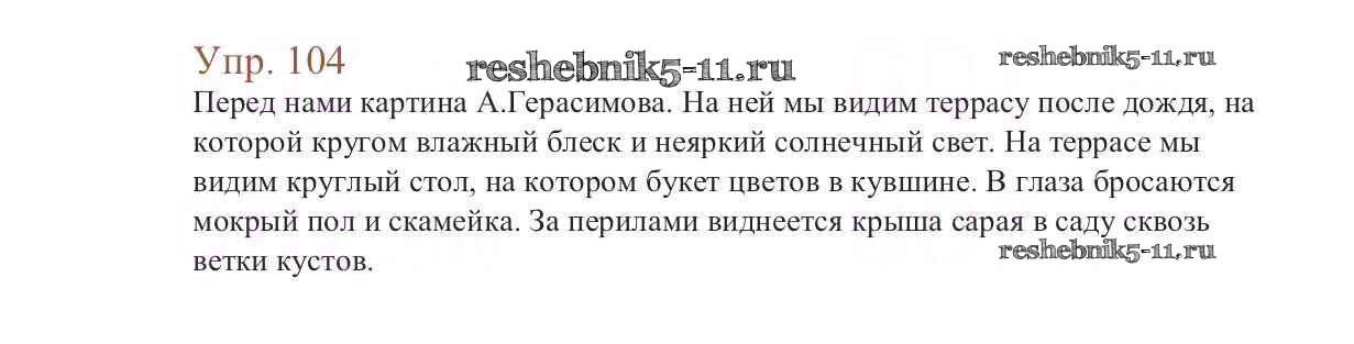Готовая домашняя работа с ответами по Русскому языку за 6 класс Баранов, Ладыженская, Тростенцова, Григорян, Кулибаба Учебник Часть 1, 2 Просвещение 2015 ФГОС - Упражнения 104