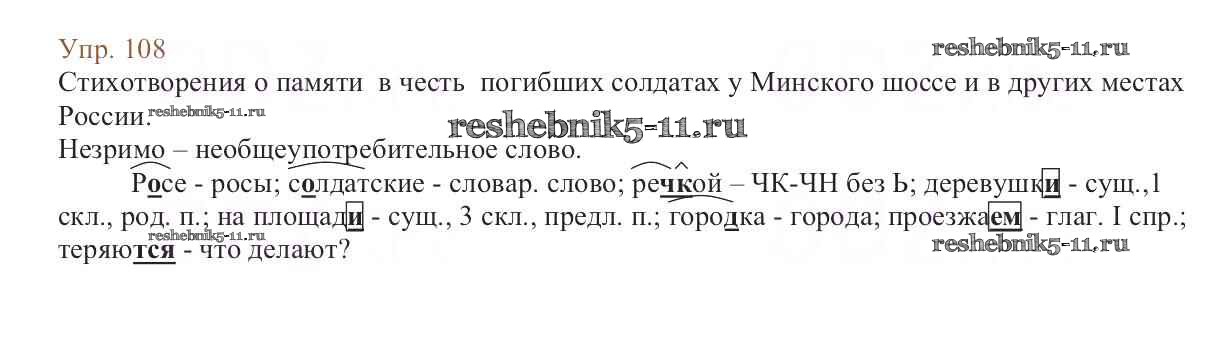Готовая домашняя работа с ответами по Русскому языку за 6 класс Баранов, Ладыженская, Тростенцова, Григорян, Кулибаба Учебник Часть 1, 2 Просвещение 2015 ФГОС - Упражнения 108