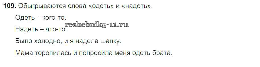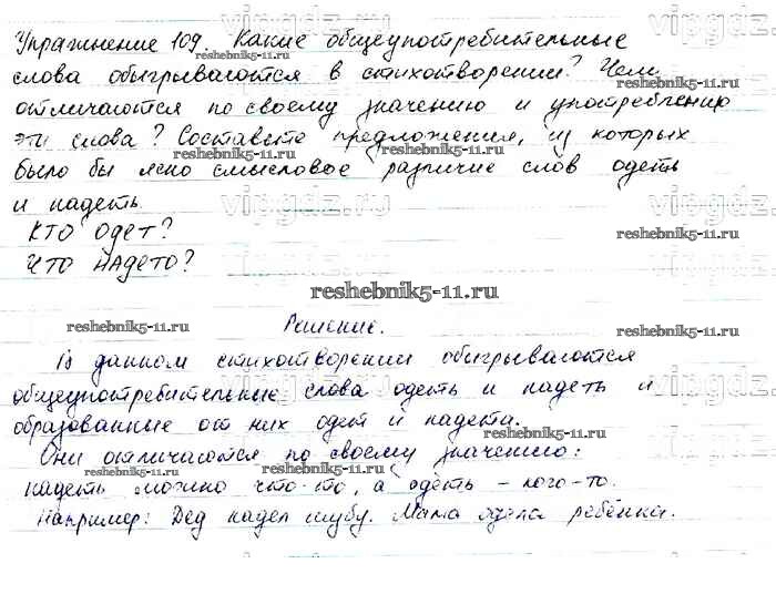 Готовая домашняя работа с ответами по Русскому языку за 6 класс Баранов, Ладыженская, Тростенцова, Григорян, Кулибаба Учебник Часть 1, 2 Просвещение 2015 ФГОС - Упражнения 109
