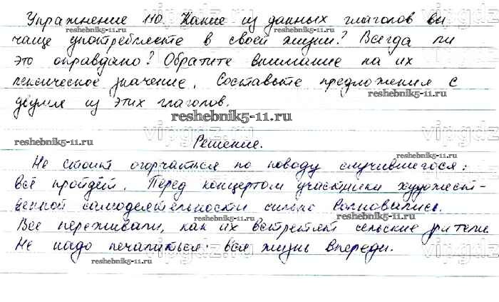 Готовая домашняя работа с ответами по Русскому языку за 6 класс Баранов, Ладыженская, Тростенцова, Григорян, Кулибаба Учебник Часть 1, 2 Просвещение 2015 ФГОС - Упражнения 110