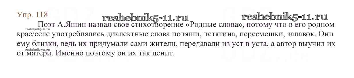 Русский язык за 6 класс Баранов Учебник Просвещение упражнение 118