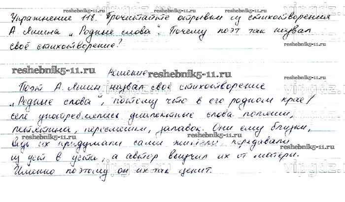 Готовая домашняя работа с ответами по Русскому языку за 6 класс Баранов, Ладыженская, Тростенцова, Григорян, Кулибаба Учебник Часть 1, 2 Просвещение 2015 ФГОС - Упражнения 118