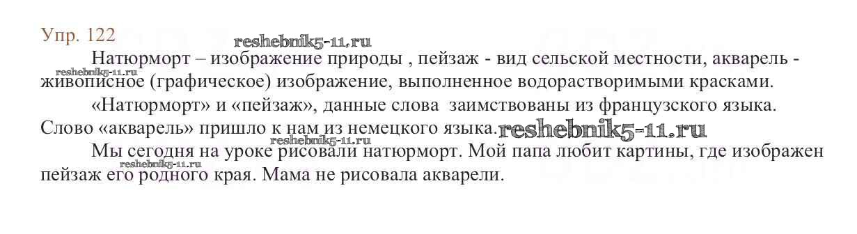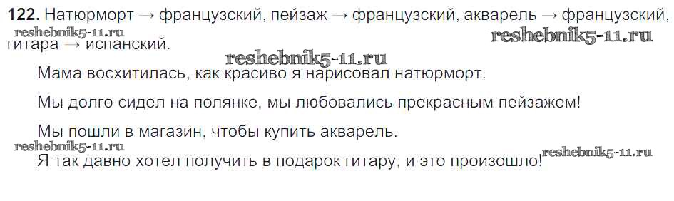 Готовая домашняя работа с ответами по Русскому языку за 6 класс Баранов, Ладыженская, Тростенцова, Григорян, Кулибаба Учебник Часть 1, 2 Просвещение 2015 ФГОС - Упражнения 122