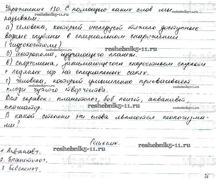 Готовая домашняя работа с ответами по Русскому языку за 6 класс Баранов, Ладыженская, Тростенцова, Григорян, Кулибаба Учебник Часть 1, 2 Просвещение 2015 ФГОС - Упражнения 130