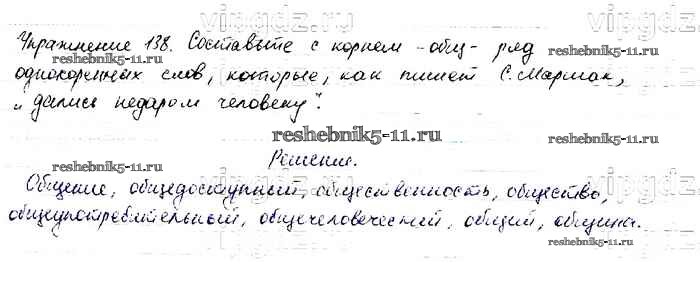 Готовая домашняя работа с ответами по Русскому языку за 6 класс Баранов, Ладыженская, Тростенцова, Григорян, Кулибаба Учебник Часть 1, 2 Просвещение 2015 ФГОС - Упражнения 138