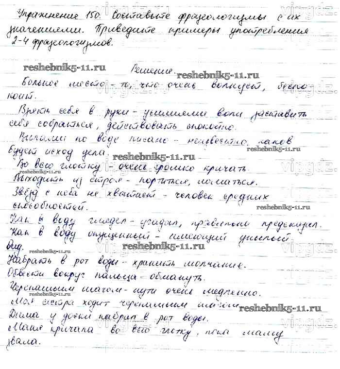 Готовая домашняя работа с ответами по Русскому языку за 6 класс Баранов, Ладыженская, Тростенцова, Григорян, Кулибаба Учебник Часть 1, 2 Просвещение 2015 ФГОС - Упражнения 150