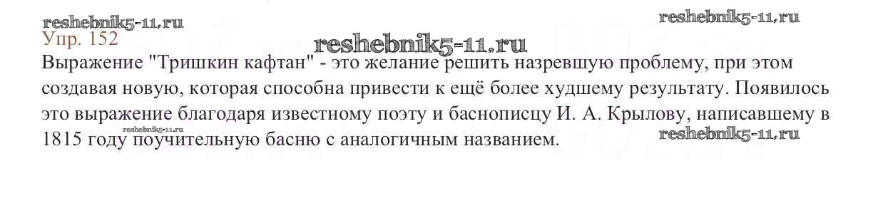 Готовая домашняя работа с ответами по Русскому языку за 6 класс Баранов, Ладыженская, Тростенцова, Григорян, Кулибаба Учебник Часть 1, 2 Просвещение 2015 ФГОС - Упражнения 152