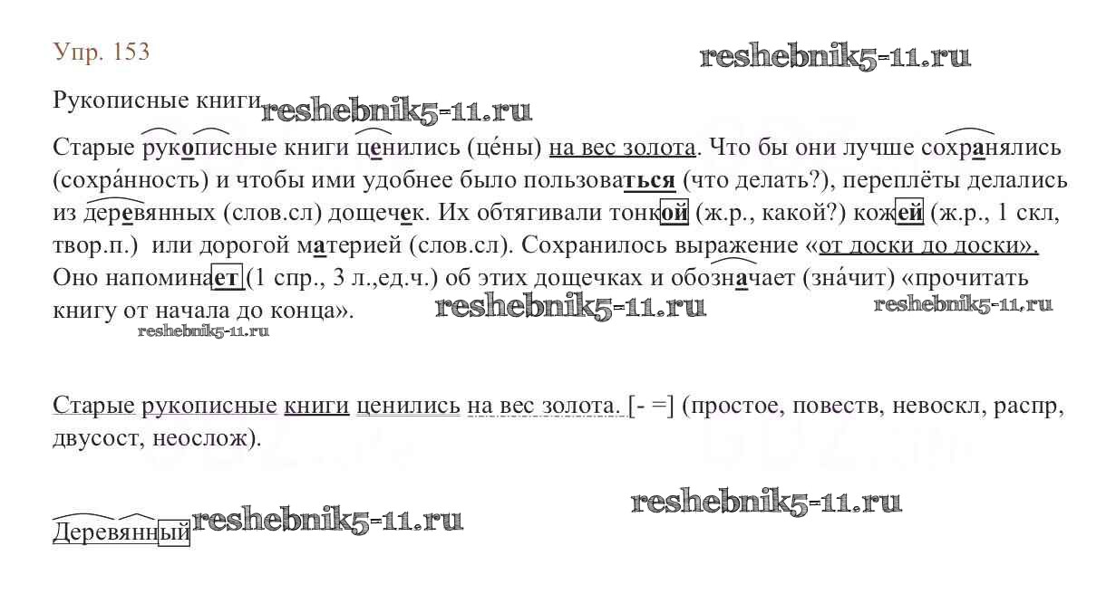 Готовая домашняя работа с ответами по Русскому языку за 6 класс Баранов, Ладыженская, Тростенцова, Григорян, Кулибаба Учебник Часть 1, 2 Просвещение 2015 ФГОС - Упражнения 153