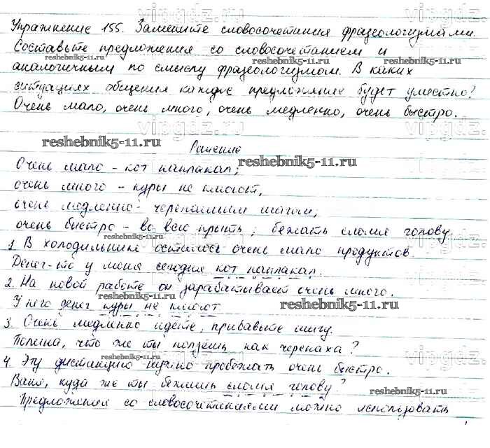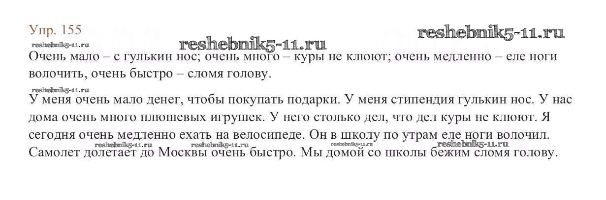 Готовая домашняя работа с ответами по Русскому языку за 6 класс Баранов, Ладыженская, Тростенцова, Григорян, Кулибаба Учебник Часть 1, 2 Просвещение 2015 ФГОС - Упражнения 155