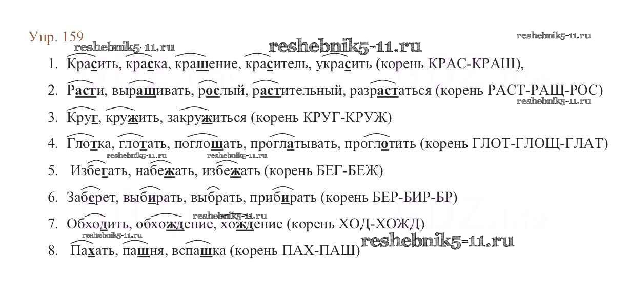 Готовая домашняя работа с ответами по Русскому языку за 6 класс Баранов, Ладыженская, Тростенцова, Григорян, Кулибаба Учебник Часть 1, 2 Просвещение 2015 ФГОС - Упражнения 159