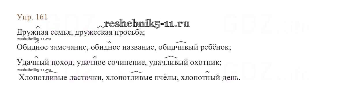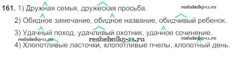Готовая домашняя работа с ответами по Русскому языку за 6 класс Баранов, Ладыженская, Тростенцова, Григорян, Кулибаба Учебник Часть 1, 2 Просвещение 2015 ФГОС - Упражнения 161