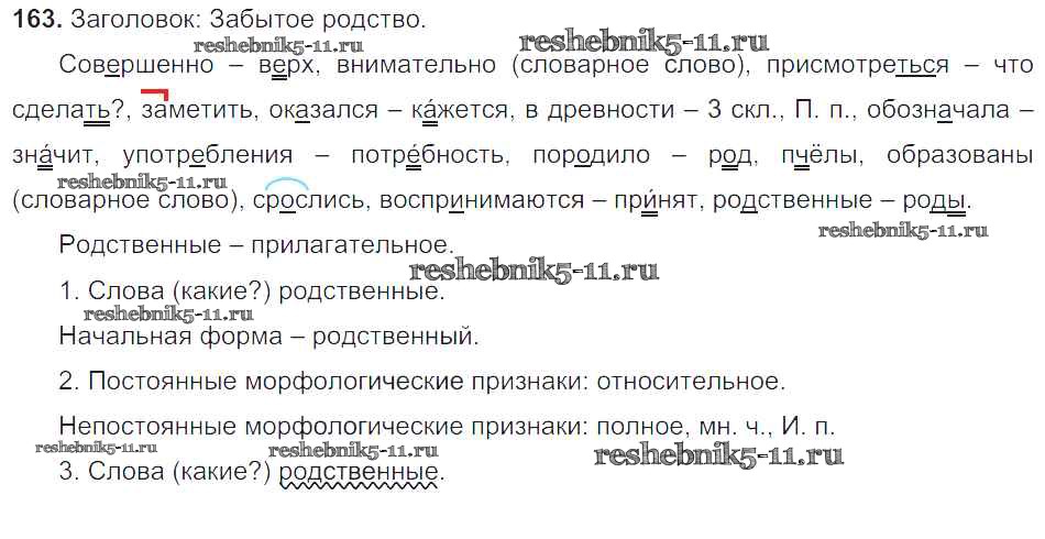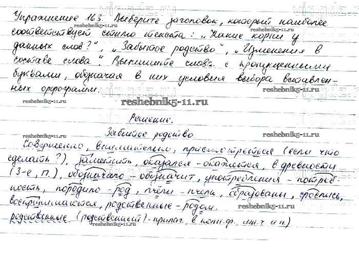 Готовая домашняя работа с ответами по Русскому языку за 6 класс Баранов, Ладыженская, Тростенцова, Григорян, Кулибаба Учебник Часть 1, 2 Просвещение 2015 ФГОС - Упражнения 163