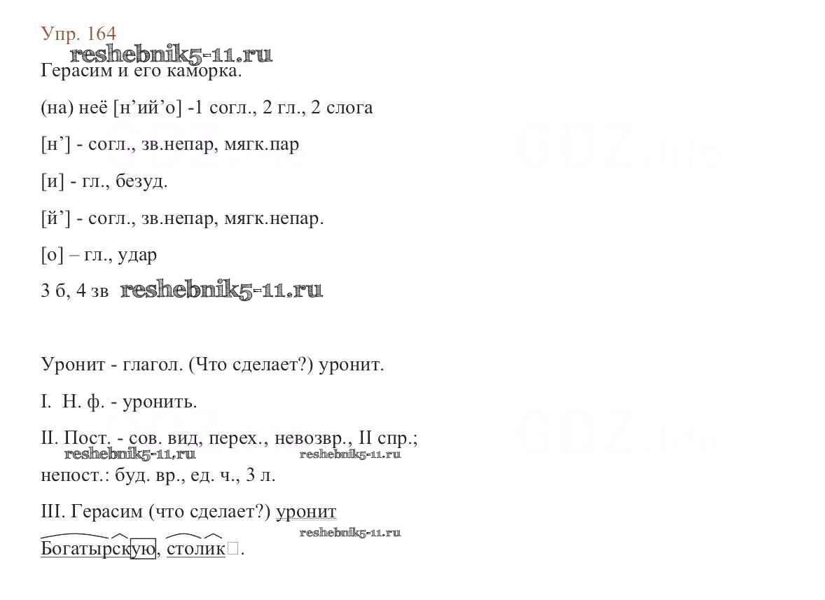 Готовая домашняя работа с ответами по Русскому языку за 6 класс Баранов, Ладыженская, Тростенцова, Григорян, Кулибаба Учебник Часть 1, 2 Просвещение 2015 ФГОС - Упражнения 164