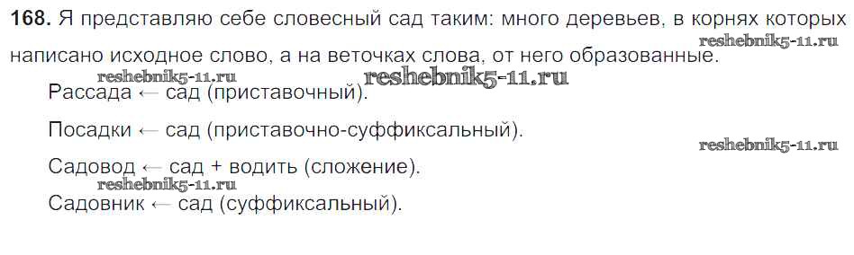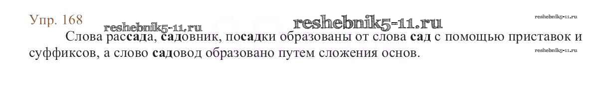 Готовая домашняя работа с ответами по Русскому языку за 6 класс Баранов, Ладыженская, Тростенцова, Григорян, Кулибаба Учебник Часть 1, 2 Просвещение 2015 ФГОС - Упражнения 168
