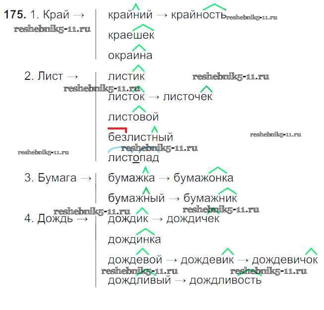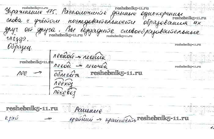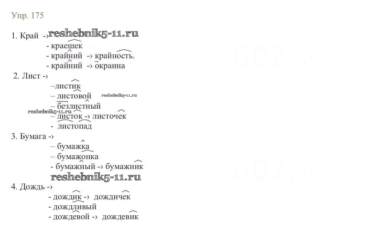 Готовая домашняя работа с ответами по Русскому языку за 6 класс Баранов, Ладыженская, Тростенцова, Григорян, Кулибаба Учебник Часть 1, 2 Просвещение 2015 ФГОС - Упражнения 175