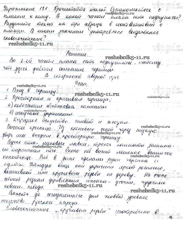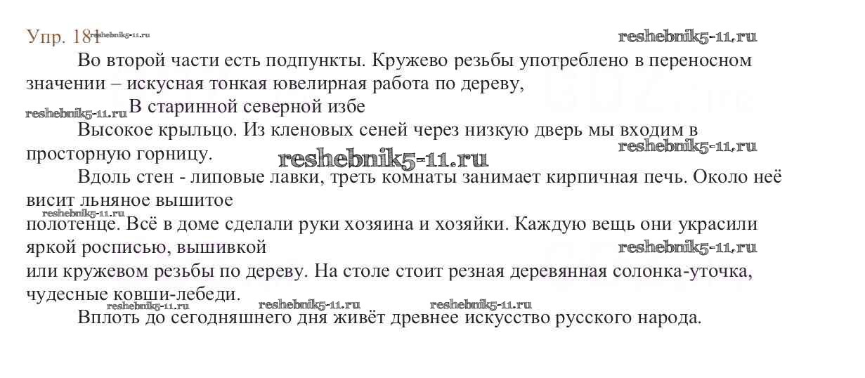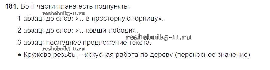 Готовая домашняя работа с ответами по Русскому языку за 6 класс Баранов, Ладыженская, Тростенцова, Григорян, Кулибаба Учебник Часть 1, 2 Просвещение 2015 ФГОС - Упражнения 181