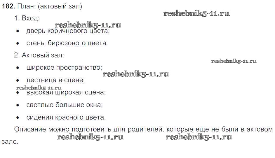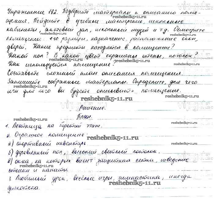 Готовая домашняя работа с ответами по Русскому языку за 6 класс Баранов, Ладыженская, Тростенцова, Григорян, Кулибаба Учебник Часть 1, 2 Просвещение 2015 ФГОС - Упражнения 182