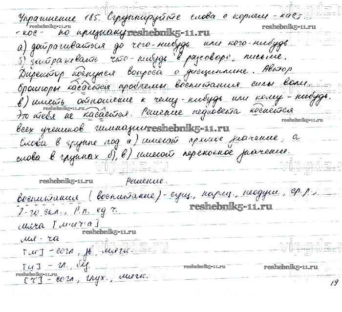 Готовая домашняя работа с ответами по Русскому языку за 6 класс Баранов, Ладыженская, Тростенцова, Григорян, Кулибаба Учебник Часть 1, 2 Просвещение 2015 ФГОС - Упражнения 185