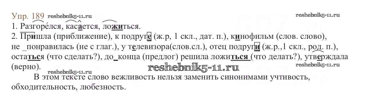 Готовая домашняя работа с ответами по Русскому языку за 6 класс Баранов, Ладыженская, Тростенцова, Григорян, Кулибаба Учебник Часть 1, 2 Просвещение 2015 ФГОС - Упражнения 189
