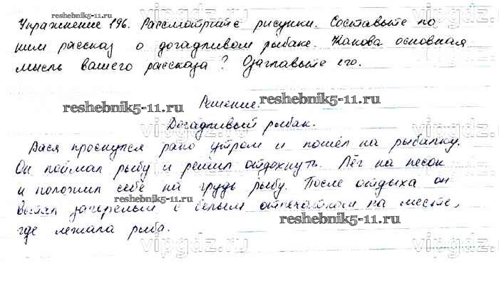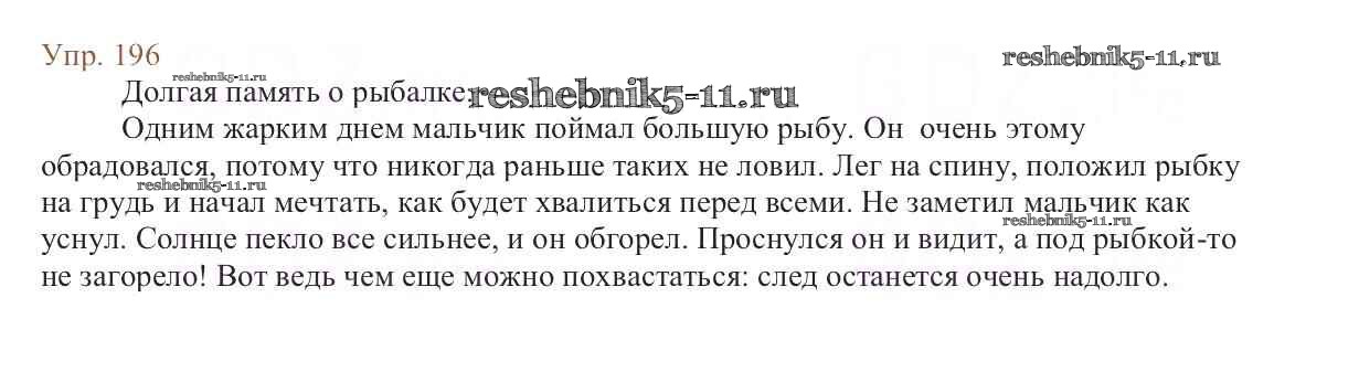 Готовая домашняя работа с ответами по Русскому языку за 6 класс Баранов, Ладыженская, Тростенцова, Григорян, Кулибаба Учебник Часть 1, 2 Просвещение 2015 ФГОС - Упражнения 196