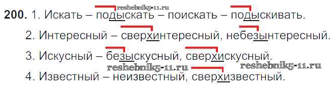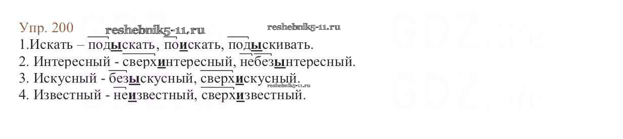 Готовая домашняя работа с ответами по Русскому языку за 6 класс Баранов, Ладыженская, Тростенцова, Григорян, Кулибаба Учебник Часть 1, 2 Просвещение 2015 ФГОС - Упражнения 200