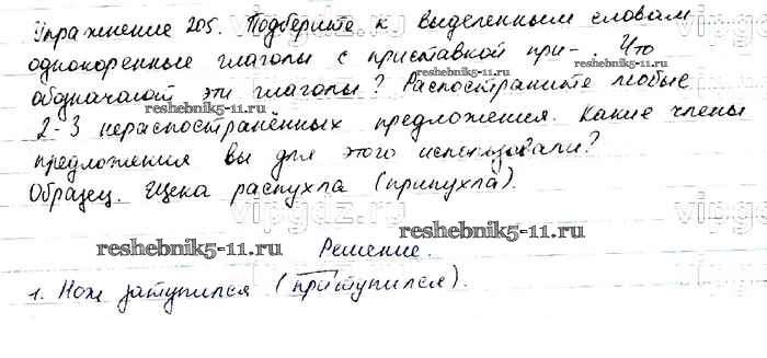 Готовая домашняя работа с ответами по Русскому языку за 6 класс Баранов, Ладыженская, Тростенцова, Григорян, Кулибаба Учебник Часть 1, 2 Просвещение 2015 ФГОС - Упражнения 205