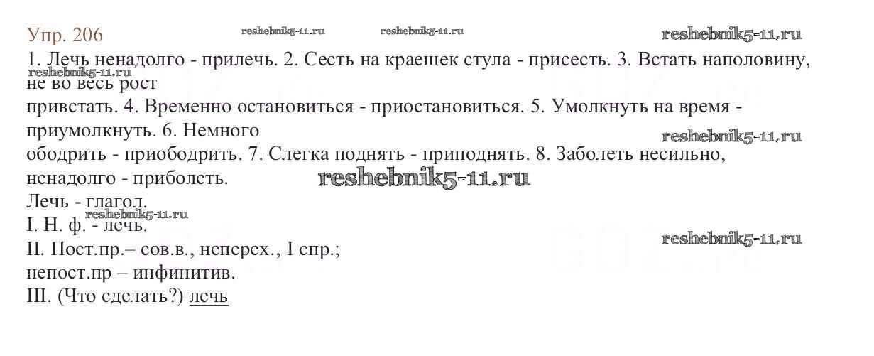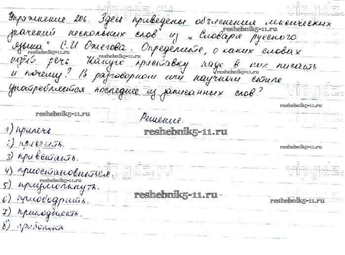 Готовая домашняя работа с ответами по Русскому языку за 6 класс Баранов, Ладыженская, Тростенцова, Григорян, Кулибаба Учебник Часть 1, 2 Просвещение 2015 ФГОС - Упражнения 206